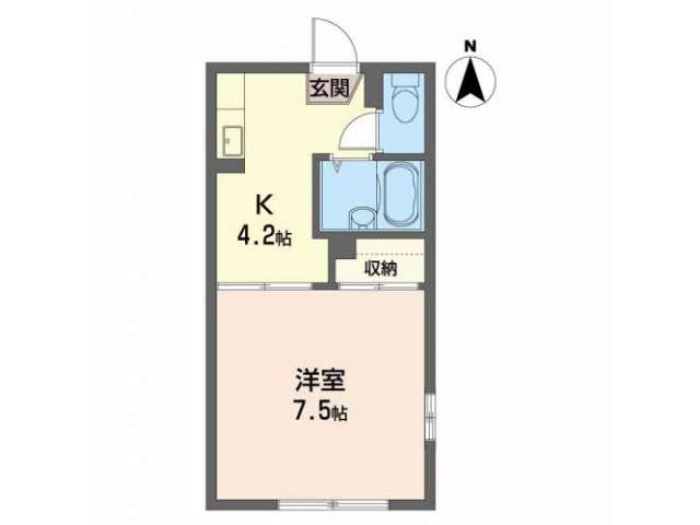 | 詳細間取 | 1K (洋7.5帖×1、キッチン3.2帖) | ||